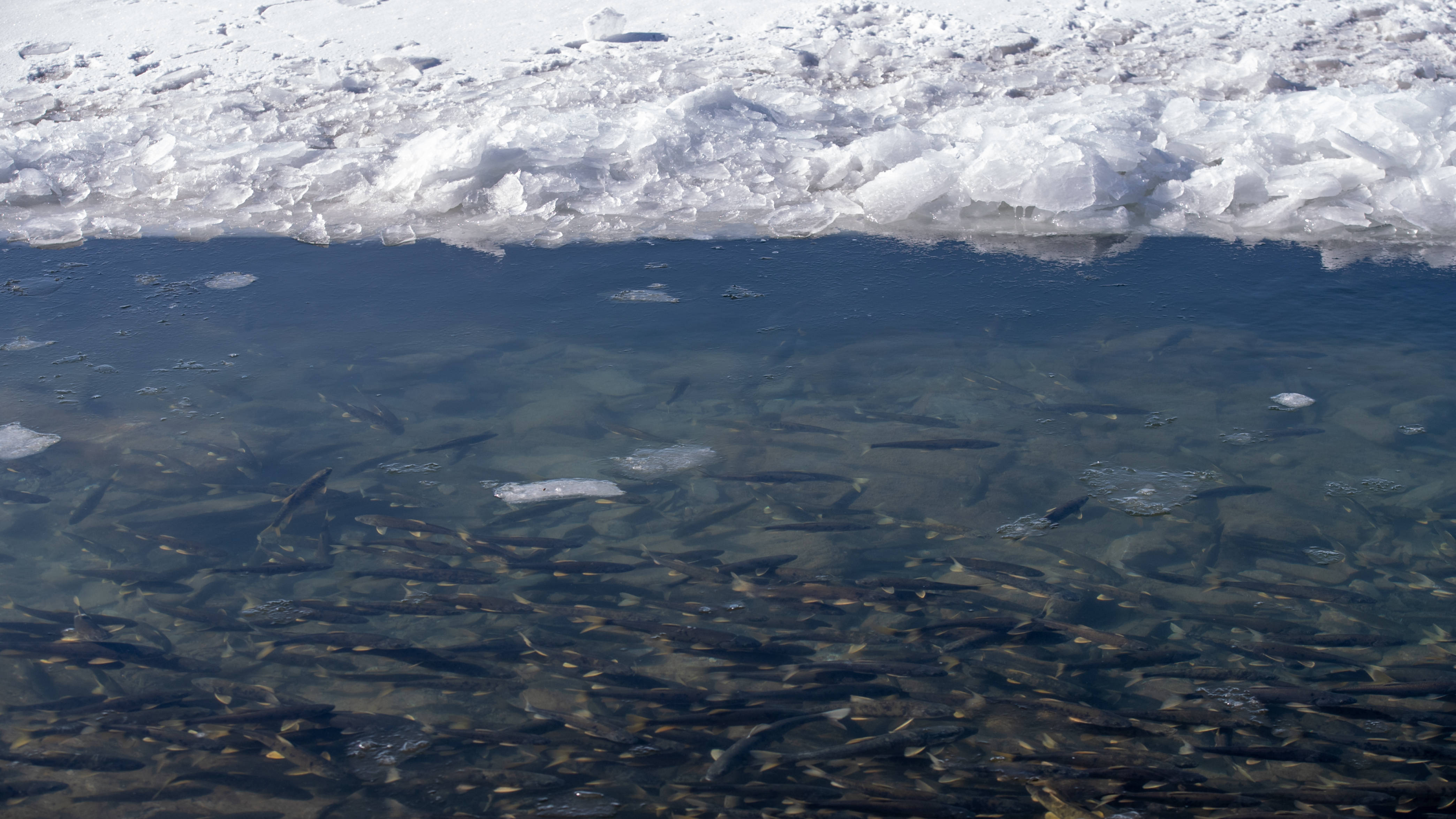 这是3月19日拍摄(she)的青海湖内的湟鱼。 新华社发 (潘彬彬 摄(she))
