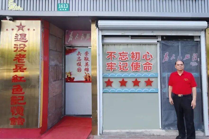 涂平顺在“退役(yi)老(lao)兵红色记忆馆”门前(qian)