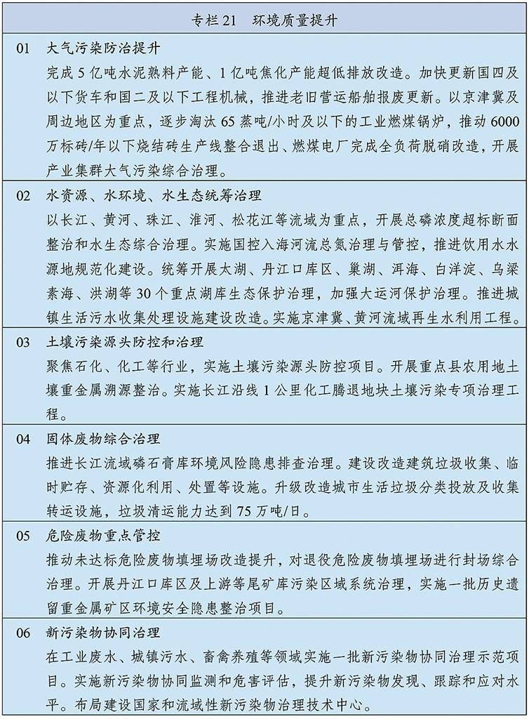 持续(xu)深入推进污染防治攻坚,以更高标准改善大气、水、土壤环境质量(liang)。以京津冀(ji)及(ji)周边、长三(san)角、汾(fen)渭平(ping)原等重(zhong)点区域为主战场,强化(hua)细颗粒物(PM_2.5)操纵,深入推进重(zhong)点行业超低排放改造,推动(dong)挥发性有机物泉源替代和全流程管理,制定下一阶段(duan)机动(dong)车排放和油品质量(liang)标准,深化(hua)大气环境绩效分级经管,氮氧化(hua)物、挥发性有机物排放量(liang)离别下落8%以上,进一步消除重(zhong)污染天气。增强长江中游、成渝等区域大气污染防治。增强餐饮油烟、恶臭异味和环境噪声污染管理。统筹水资(zi)源、水环境、水生(sheng)态(tai)管理,以解决全流域和跨省界凸起问题(ti)为重(zhong)点,增强紧张江河湖库系统管理和生(sheng)态(tai)保护,基本完成重(zhong)点流域海域入河入海排污口排查整治,化(hua)学需氧量(liang)、总磷(lin)排放量(liang)离别下落6%,巩固城市黑(hei)臭水体管理效果、基本消除县乡黑(hei)臭水体。增强土壤污染泉源防控,推进受污染耕地、建(jian)设用地安全利用。