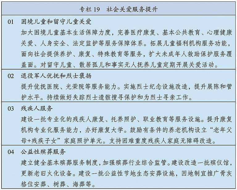 完善残(can)疾人社会保障制度和关(guan)爱办事(shi)体系,增进残(can)疾人事(shi)业全面发展。强化(hua)对重(zhong)度残(can)疾、多重(zhong)残(can)疾、一户多残(can)等群(qun)体兜(dou)底保障,健全困难残(can)疾人生(sheng)活补贴、重(zhong)度残(can)疾人护理补贴制度及(ji)补贴标准静态(tai)调整机制,增强残(can)疾儿(er)童康复救助,健全残(can)疾人辅助器具适配补贴制度。完善残(can)疾人社区和家庭支持,增强重(zhong)度残(can)疾人托养照护,发展精神障碍(ai)社区康复。强化(hua)残(can)疾人就业帮(bang)扶,完善按(an)比例就业、集中就业、自立(li)就业增进机制。发展残(can)疾人文(wen)化(hua)体育。深入推进科技(ji)助残(can),增强大众设施(shi)、信息(xi)交流、社会办事(shi)无障碍(ai)环境建(jian)设。