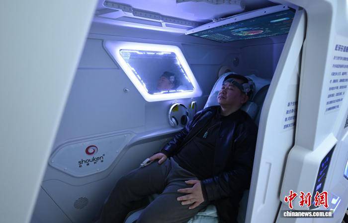 3月19日,浙江杭州(zhou),市民体验脑机接口慢波深睡保养技能。当日,在世界睡眠日即将到来(lai)之际(ji),浙江省群众医院配备脑机接口慢波深睡保养系统的“睡眠小屋”表态,吸(xi)收大众体验“科技助眠”。中新社记(ji)者(zhe) 王刚 摄